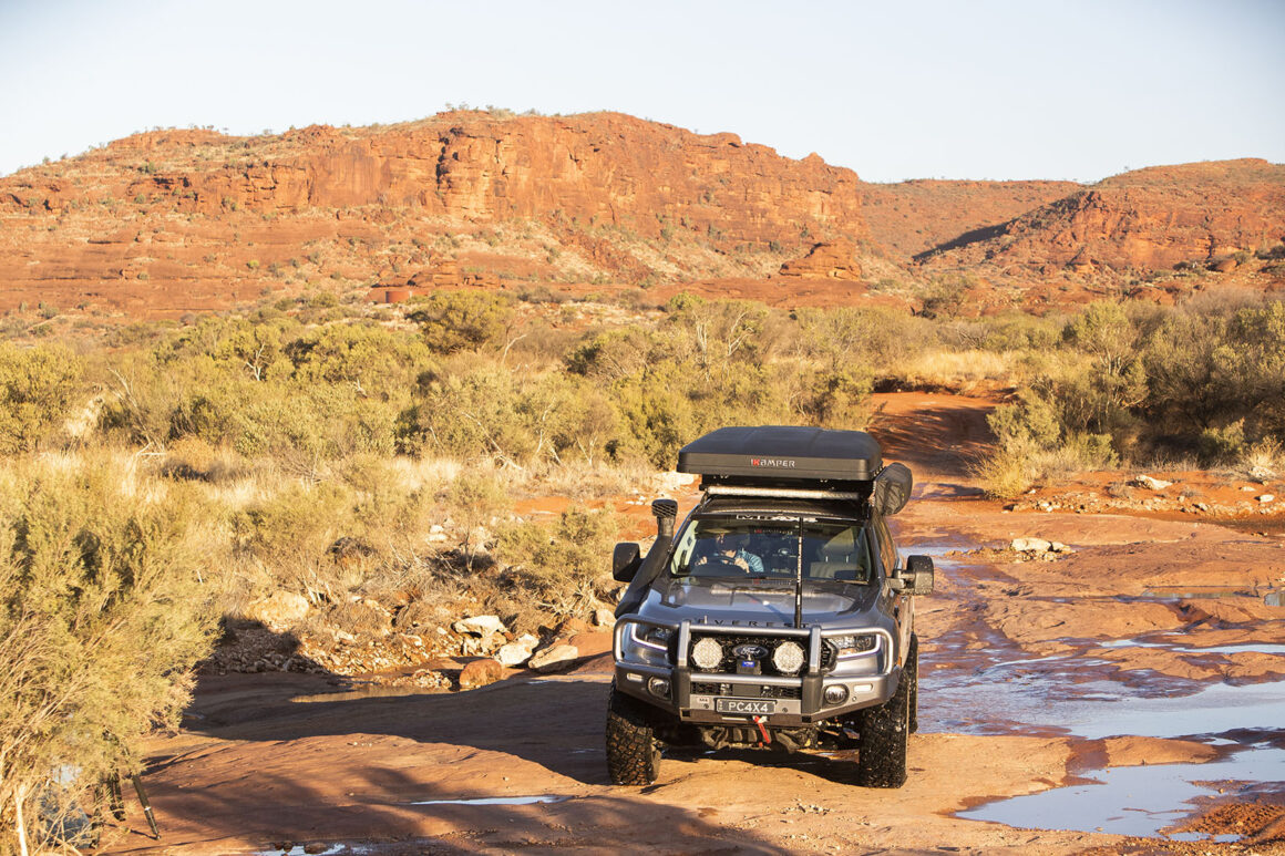 On Pat’s most recent trip up the river bed he found success dropping tyre pressures down from his 40psi road pressures to a more off-road friendly 25psi. The increased footprint helping the Ranger float over the soft sand. He dialled the firmness up on his Outback Armour adjustable shocks too for better handling and more control in the soft stuff.