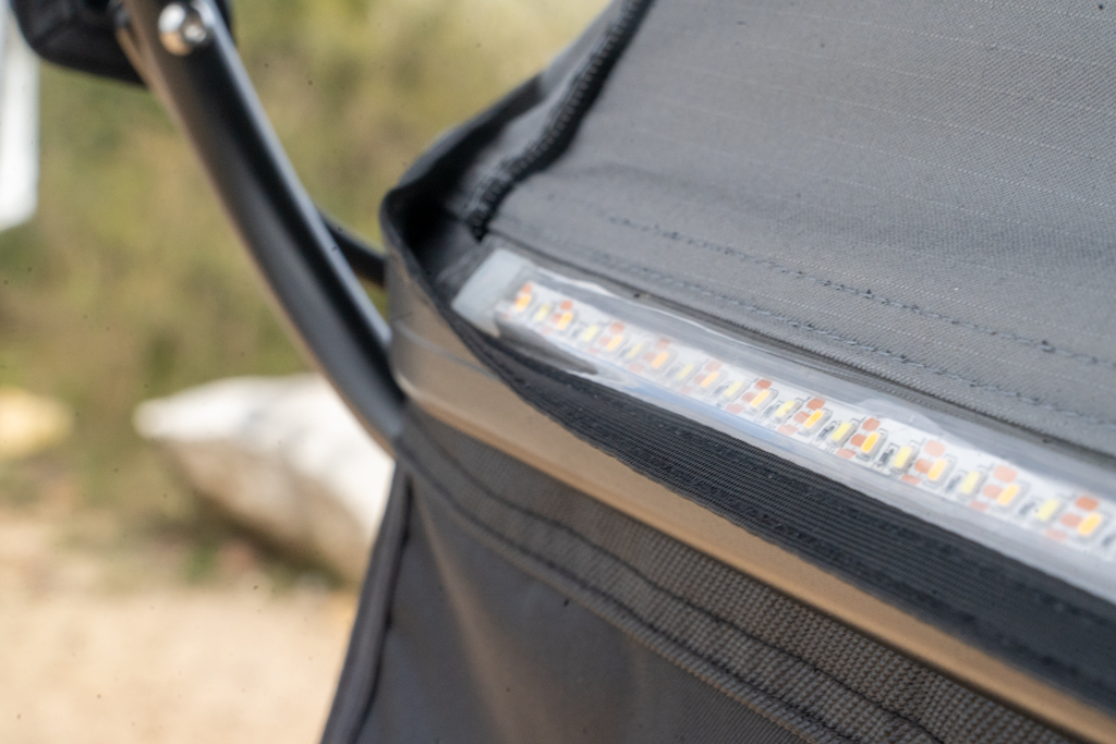 Here’s something that really stood out: integrated LED light strips, both internal and external, that run straight off a USB battery bank. No need to hardwire it into your canopy system. You could run it off anything with a USB-A outlet, although Bushwakka do make their 20000 mAh battery bank that suits.