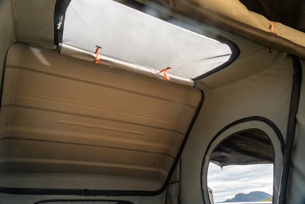 Storage is sorted too, with internal pouches for phones and keys, a waterproof shoe bag hanging below the ladder, and multiple windows and vents, including a neat skylight, which might sound gimmicky until you lie back in the middle of nowhere and watch the stars flicker through it.